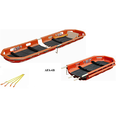 The stretcher is made with an eye on a very range of emergency situations, and it is sturdy and flexible for use in all types of aid in special situations. Its reliable fittings enable first-aid personnel to operate rapidly and safely. With its special sling equipment, the stretcher is ideal for lifting and transport by helicopter. It has an adjustable feet-securing mechanism, safety belts and a mattress. It is also designed for to be secured inside the helicopter. All the materials used have dimensions suitable to work and they are fire-proof. They don’t release any toxic or polluting substances and they are protected to obtain high resistance to wear and corrosion. You can split it into two parts, making it compact and easy to transport.